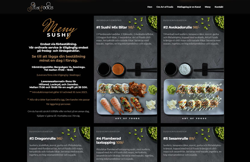 Designade och utvecklade en responsiv och användarvänlig webbplats anpassad för att visa upp Art of Foods utbud, stärka online-synligheten och möjliggöra enkel kundinteraktion.